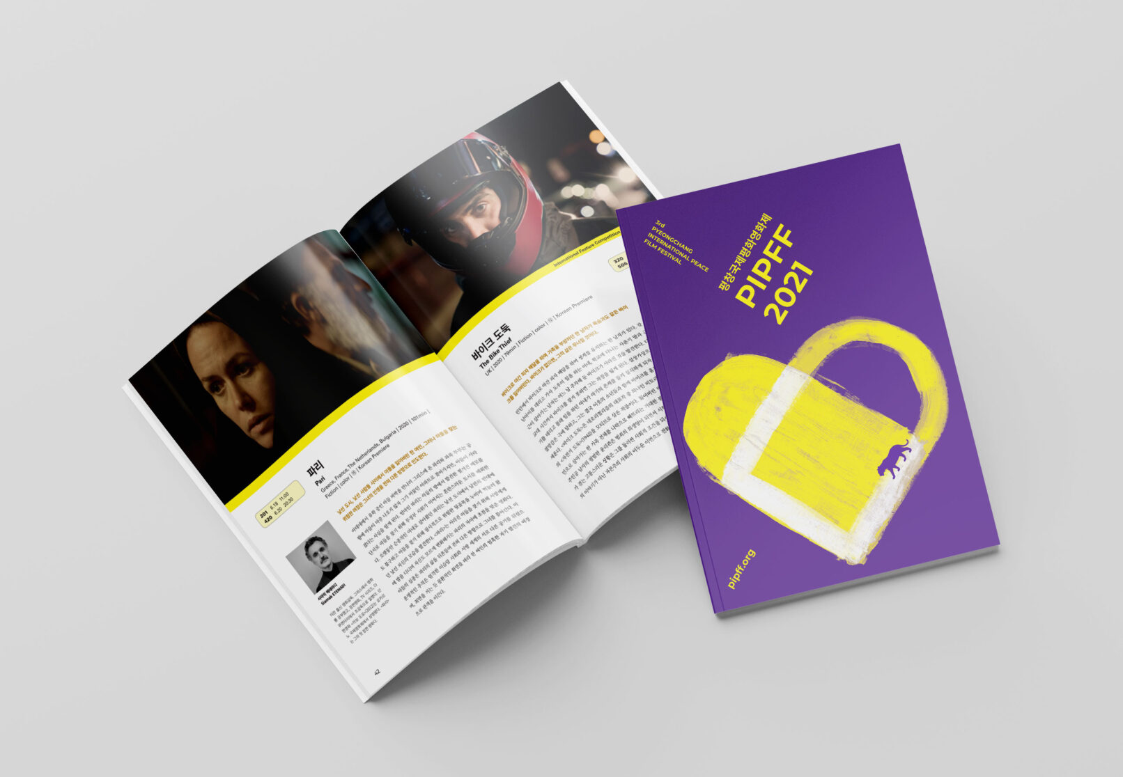 2021 평창국제평화영화제(PIPFF) 카탈로그 표지는 메인 포스터의 이미지를 45도 회전 배치하여, 긴 터널의 끝에 비치는 희망의 빛인 동시에 두 개의 터널 형상이 겹쳐 하트를 형성하는 포스터의 컨셉을 보다 직접적으로 표현하고 있다.